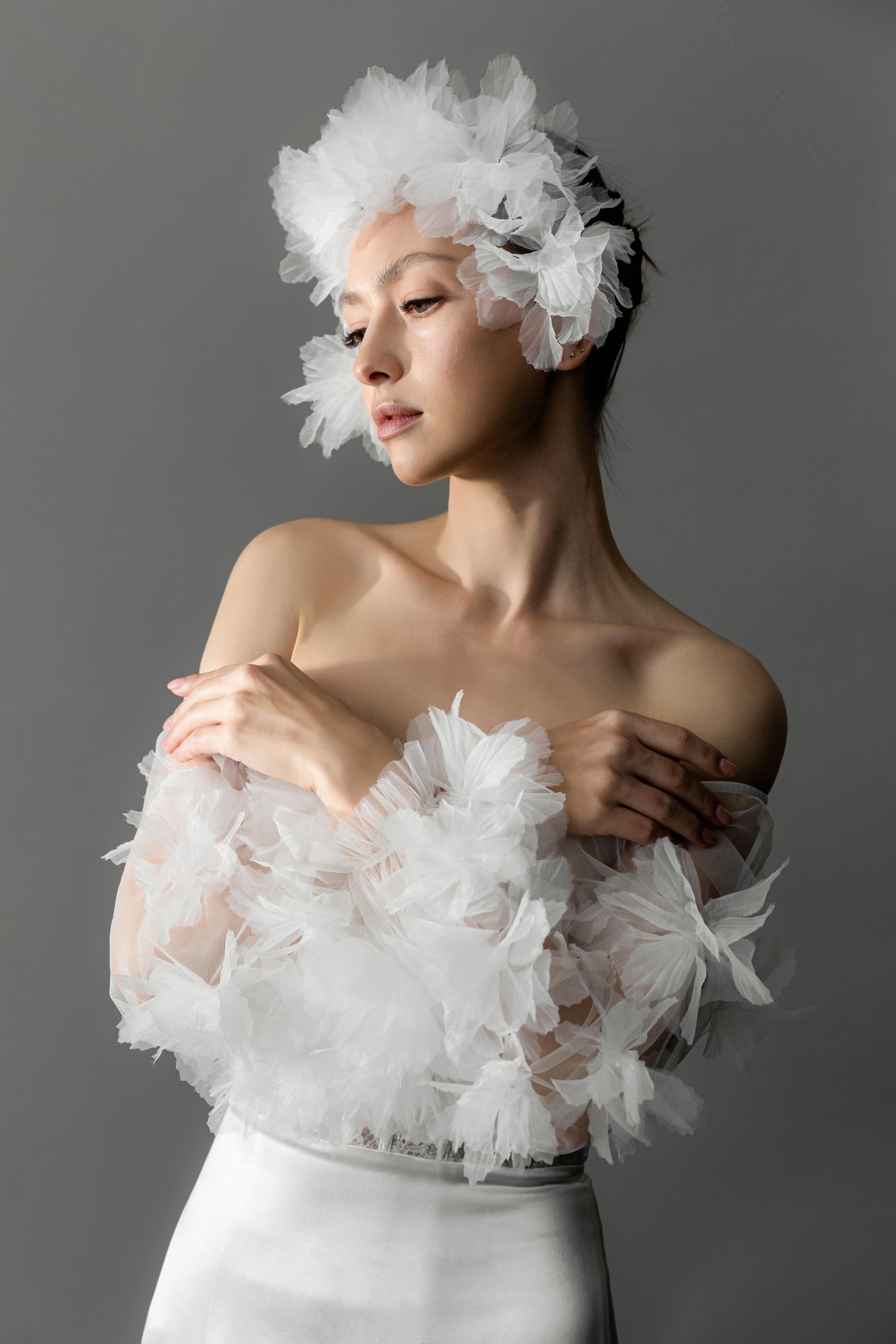 • 薄纱材质轻盈透气,兼具飘逸感与立体感。