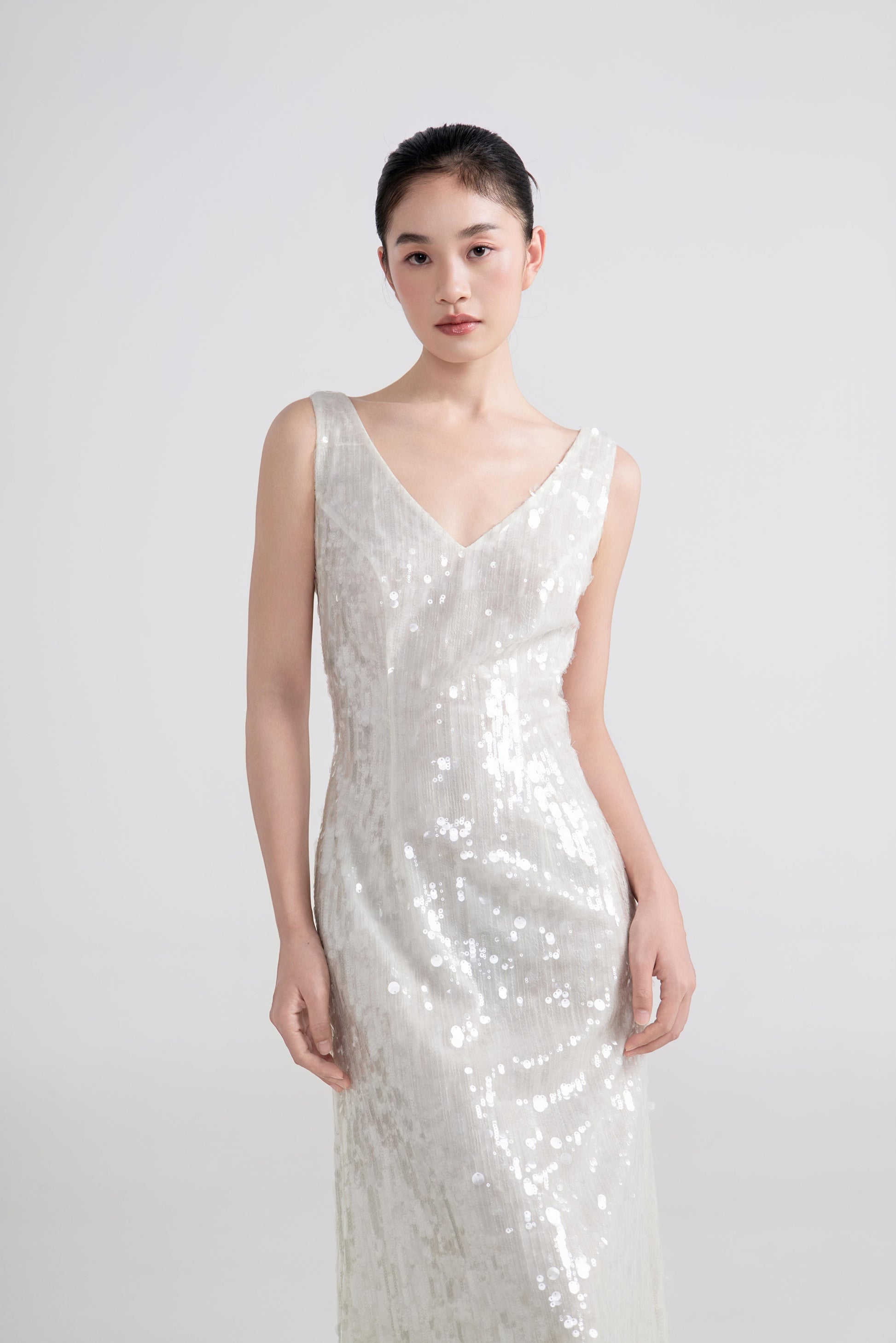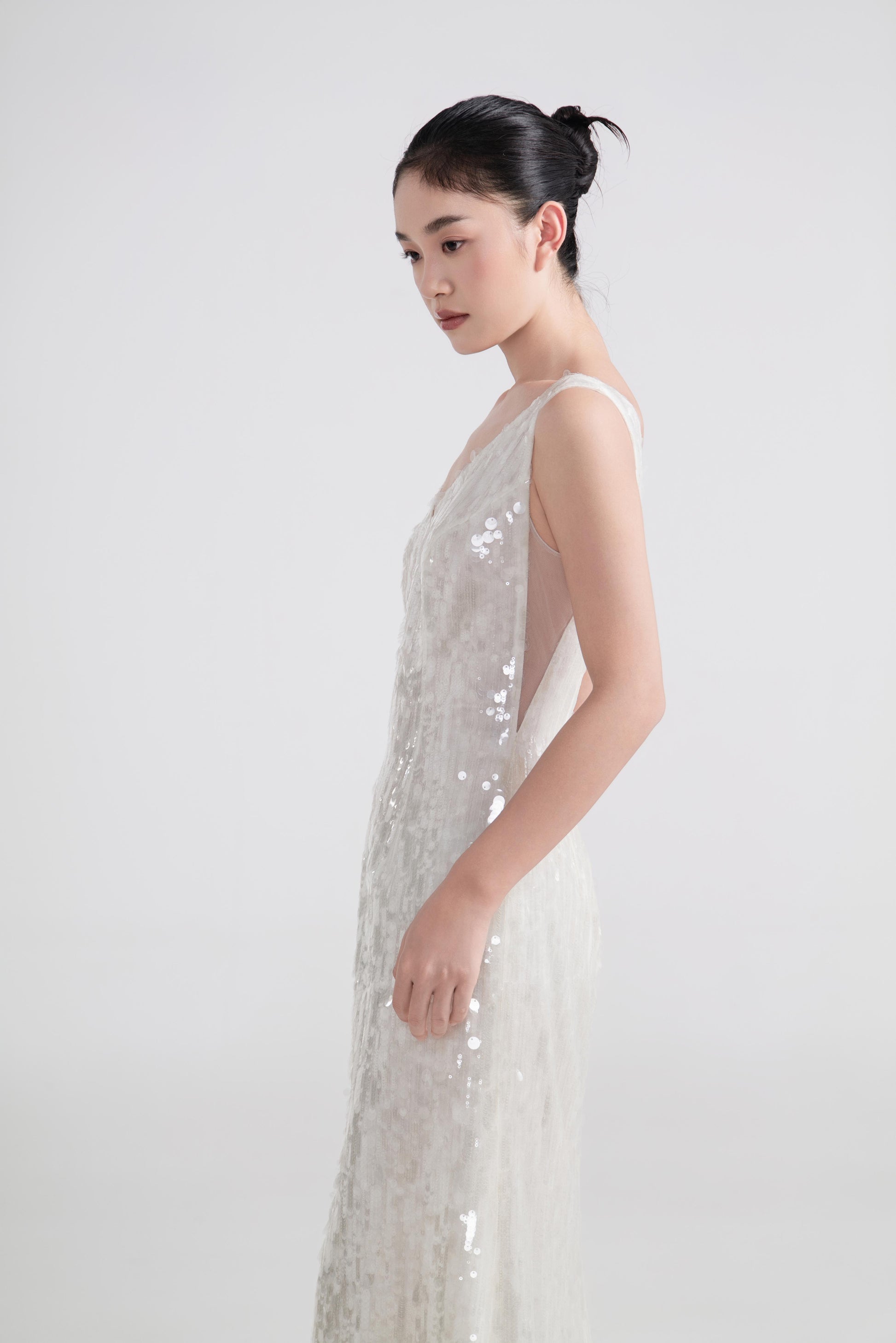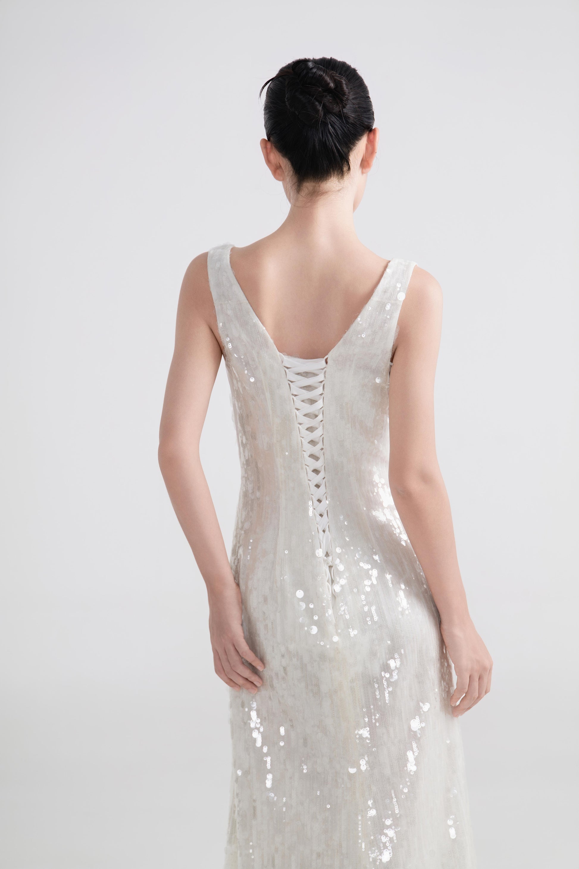 - 亮片蕾丝由不同大小亮片精致编织,光泽层次感丰富。