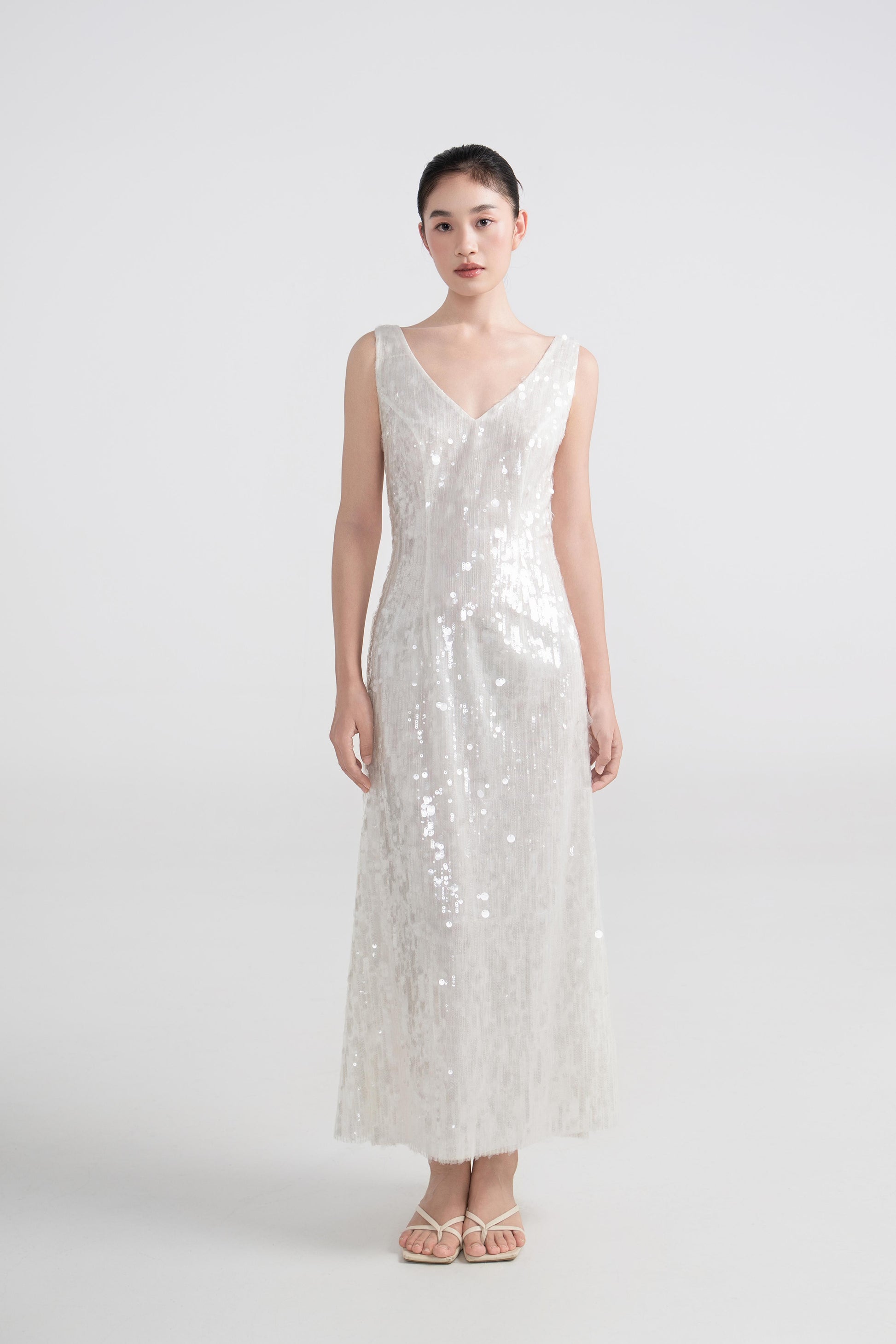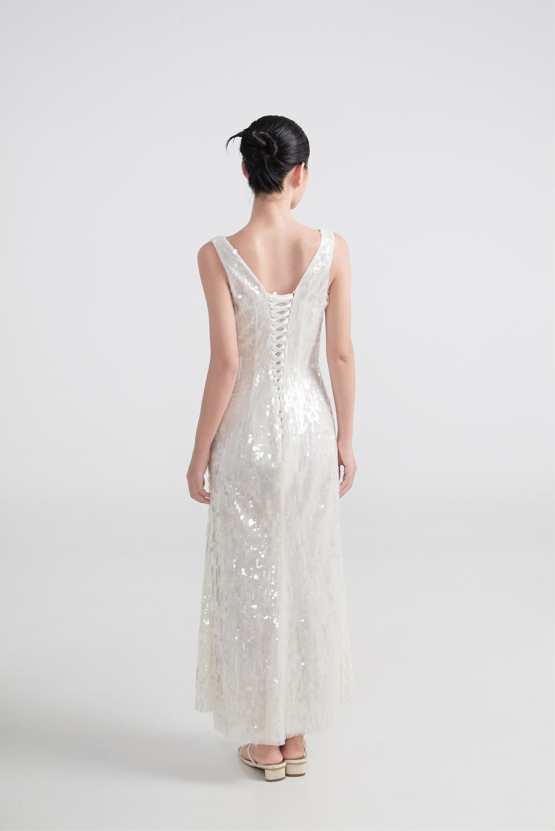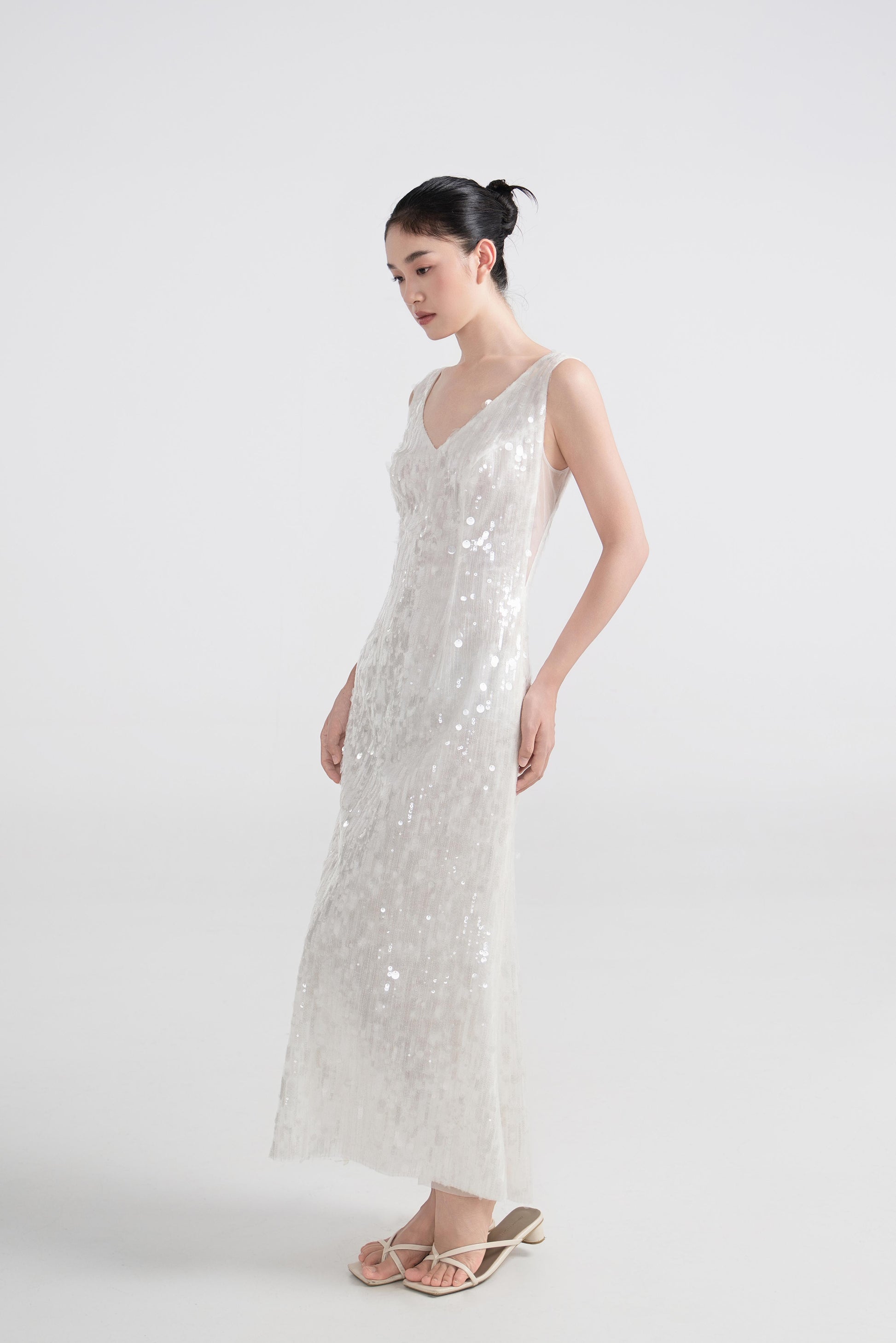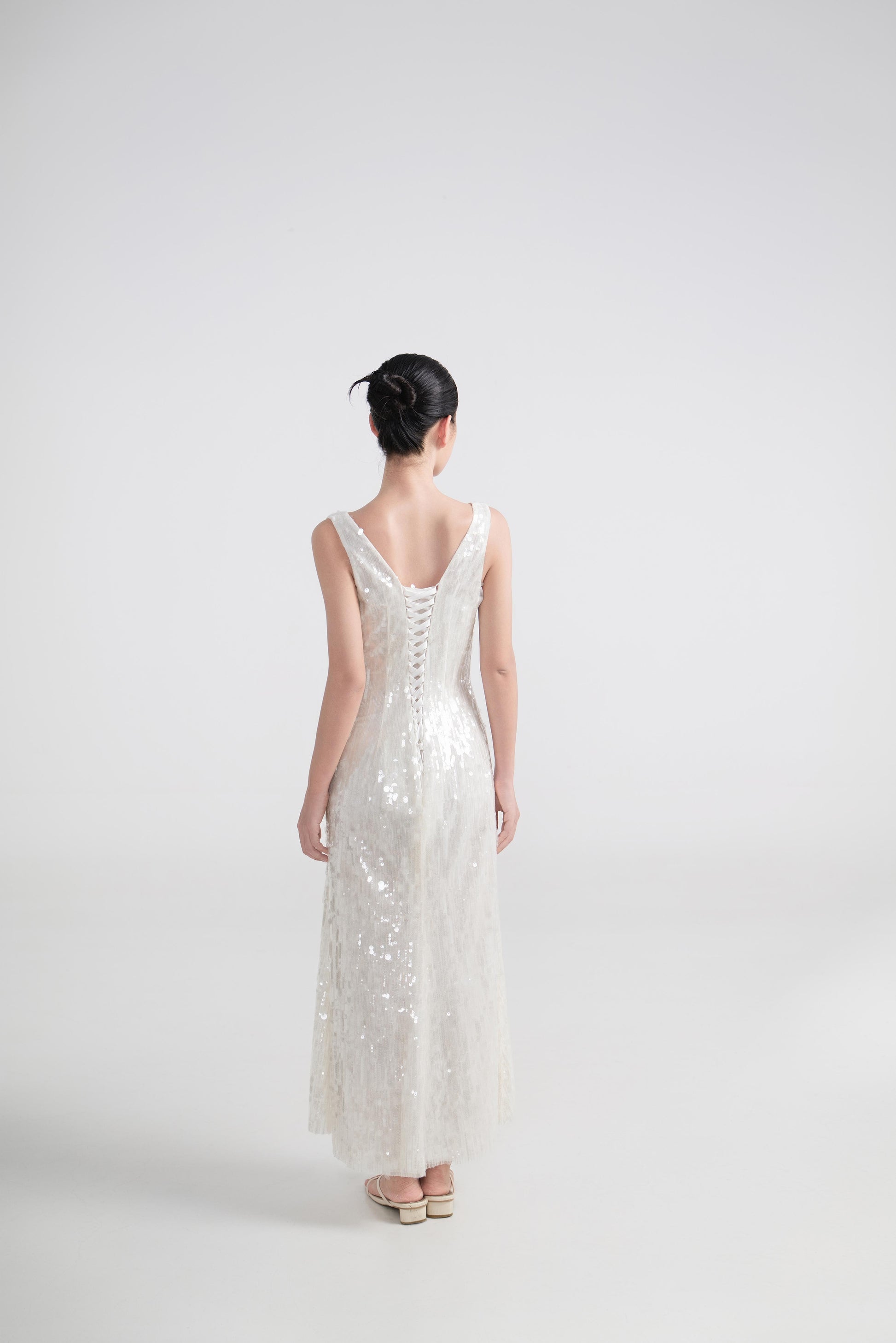 - 亮片蕾丝由不同大小亮片精致编织,光泽层次感丰富。