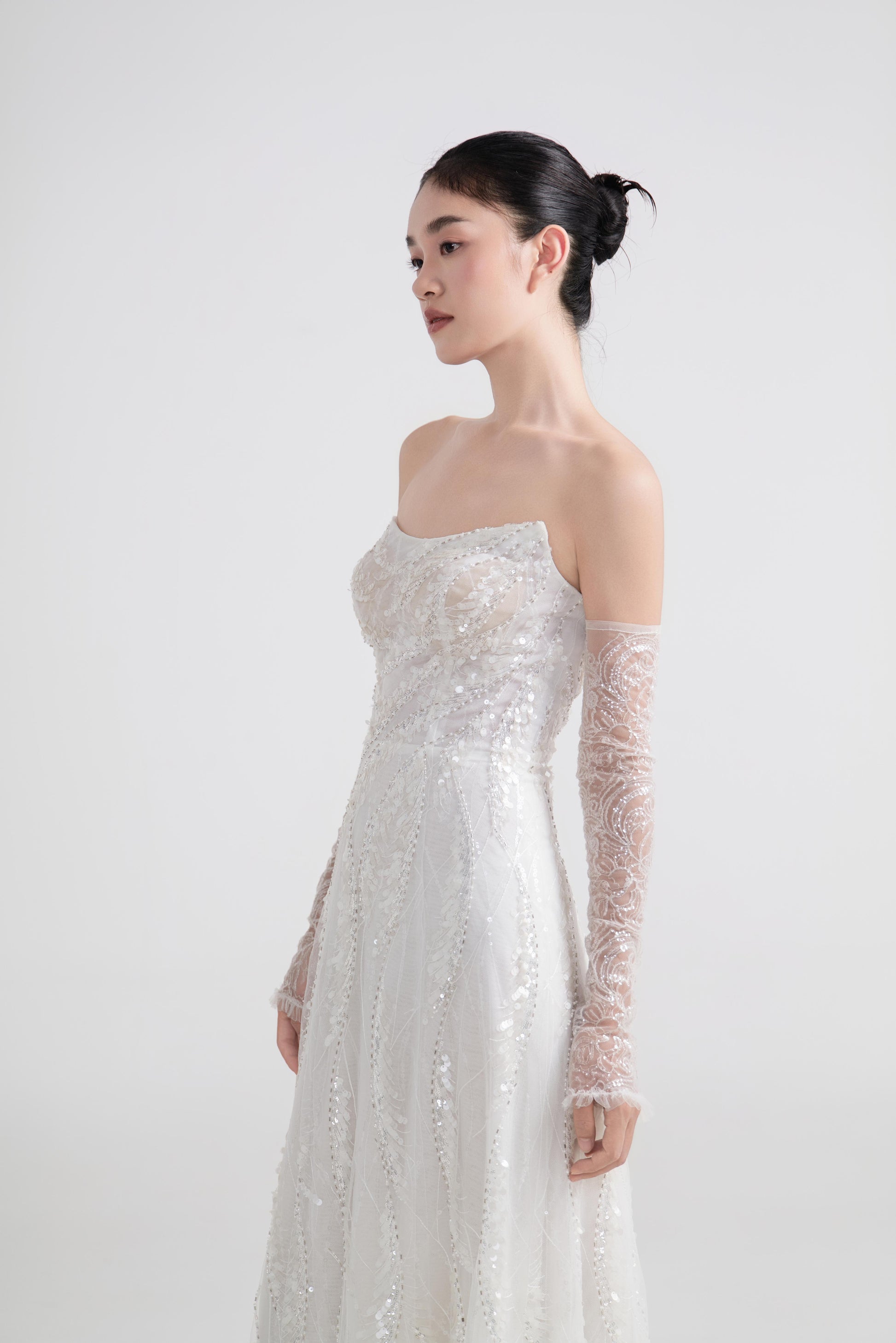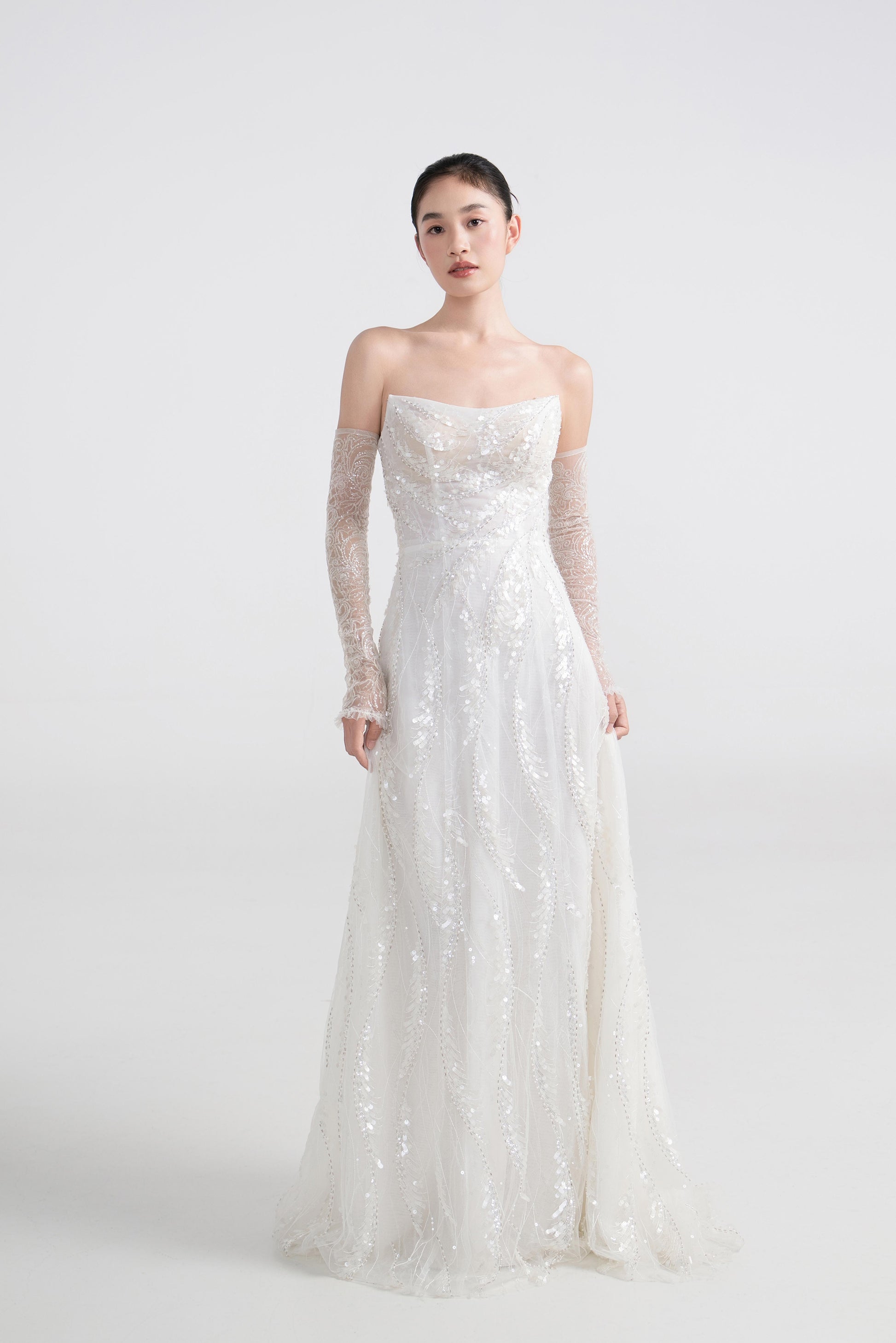 - 礼服整体比例经过精心调控,兼具优雅与灵动感。