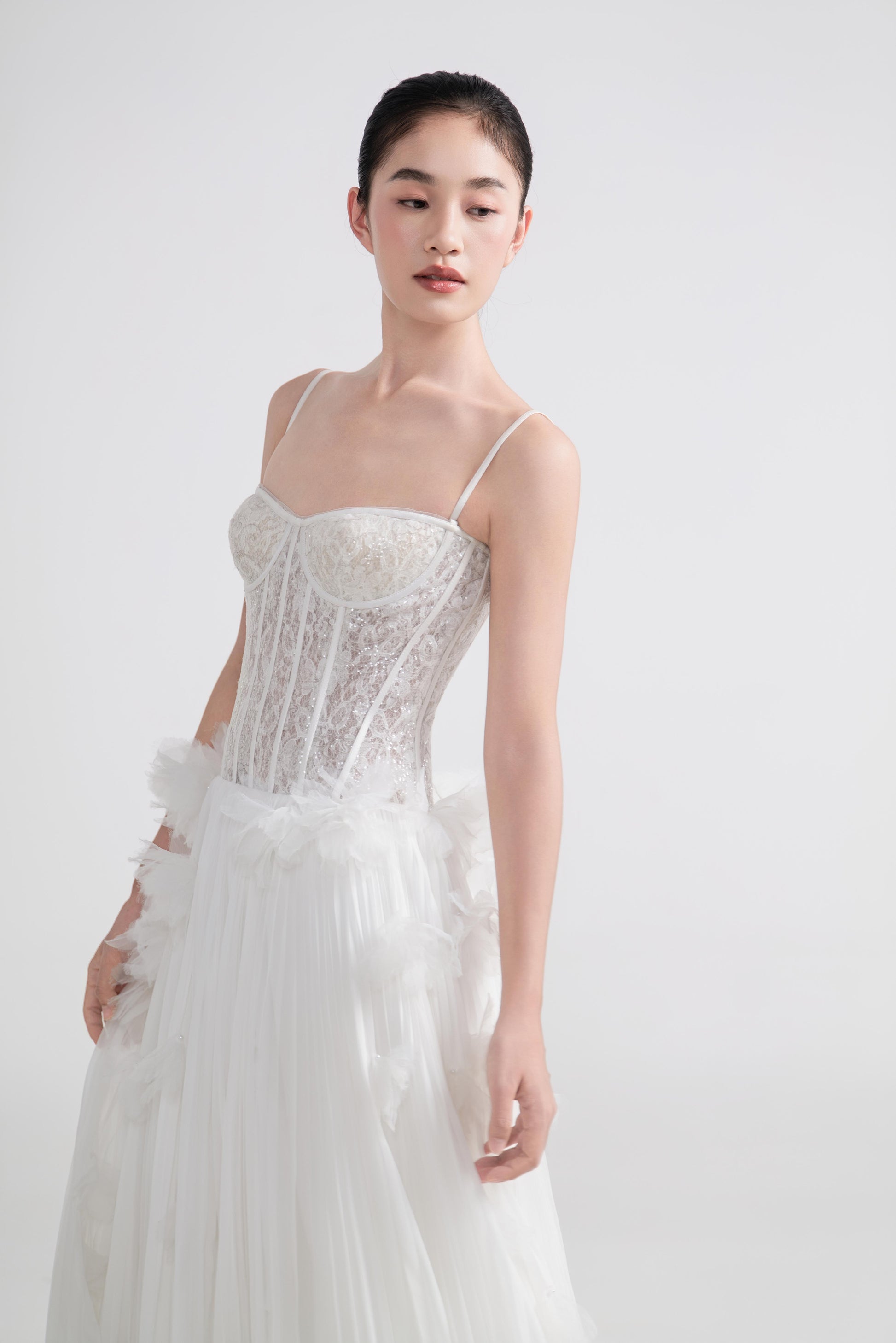 - 细吊带设计,轻盈而柔美,修饰肩颈线条。