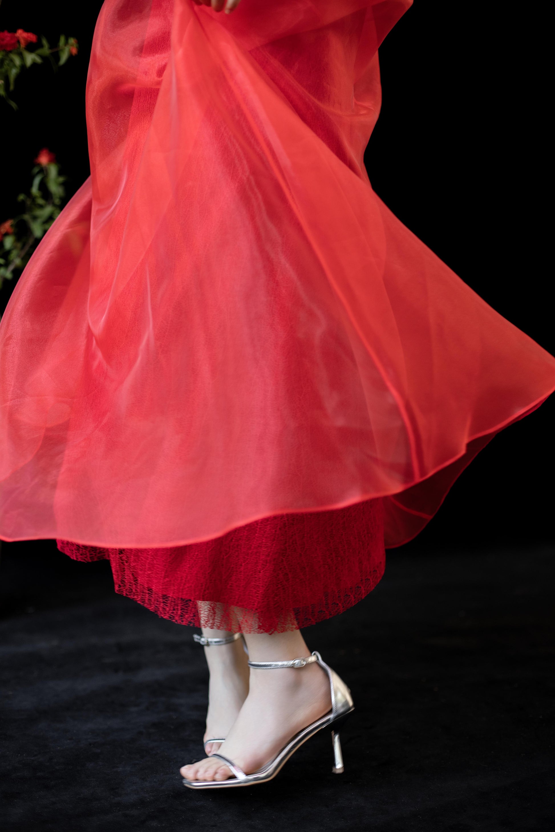流光欧根纱,轻盈通透,自带微微光泽,像阳光穿过树叶投下的斑驳。