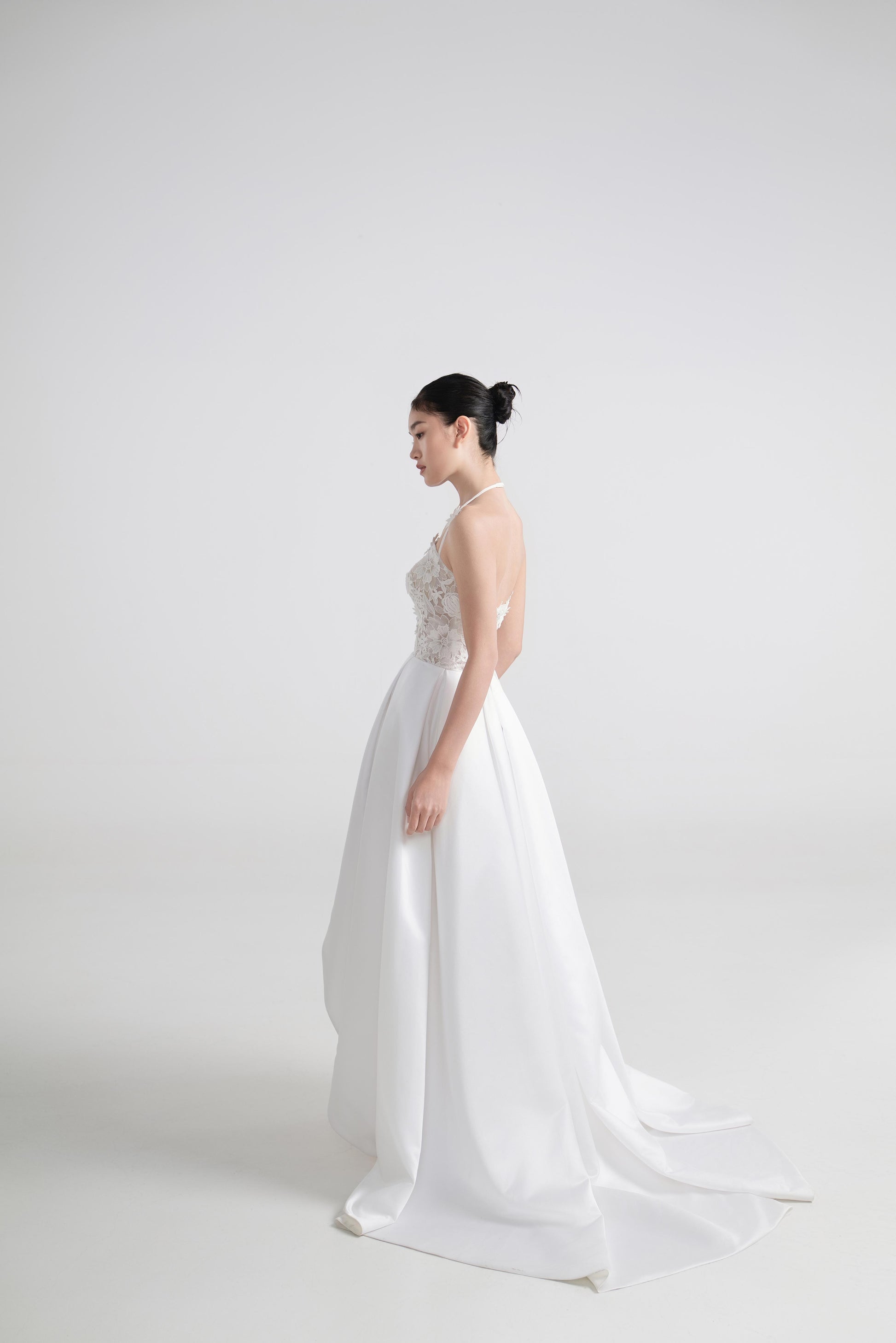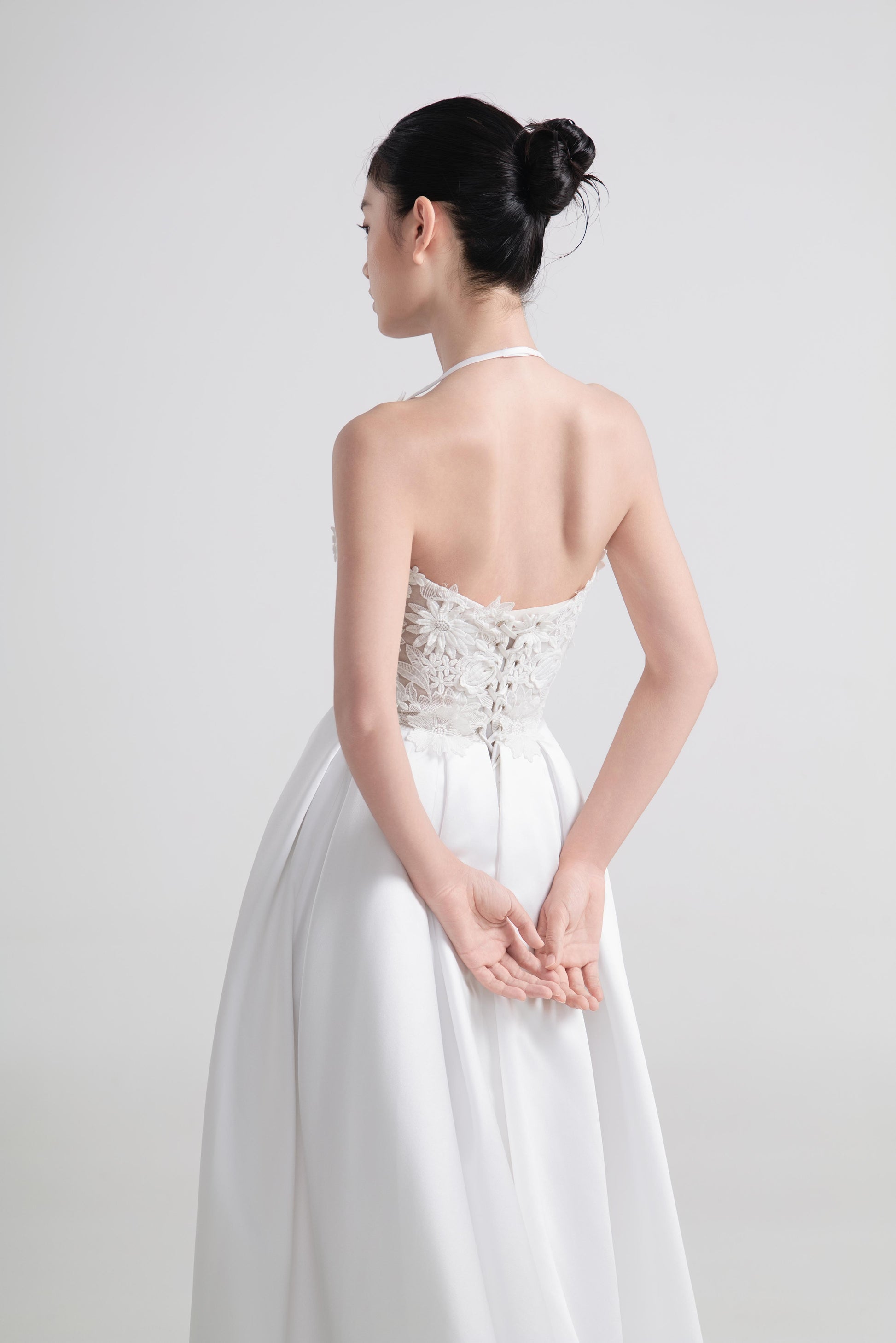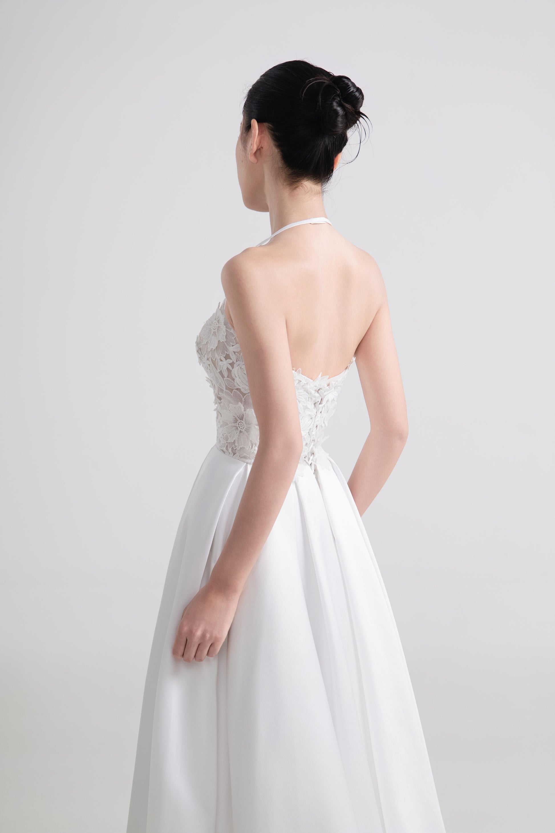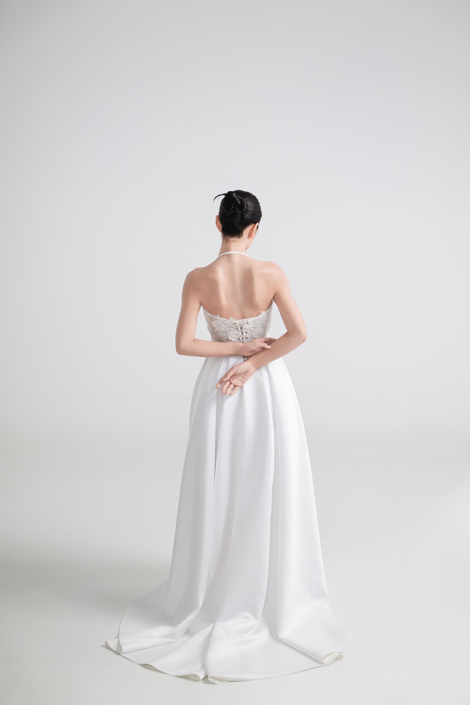 - 上身简洁收腰,凸显身形比例,平衡蓬裙的饱满感。