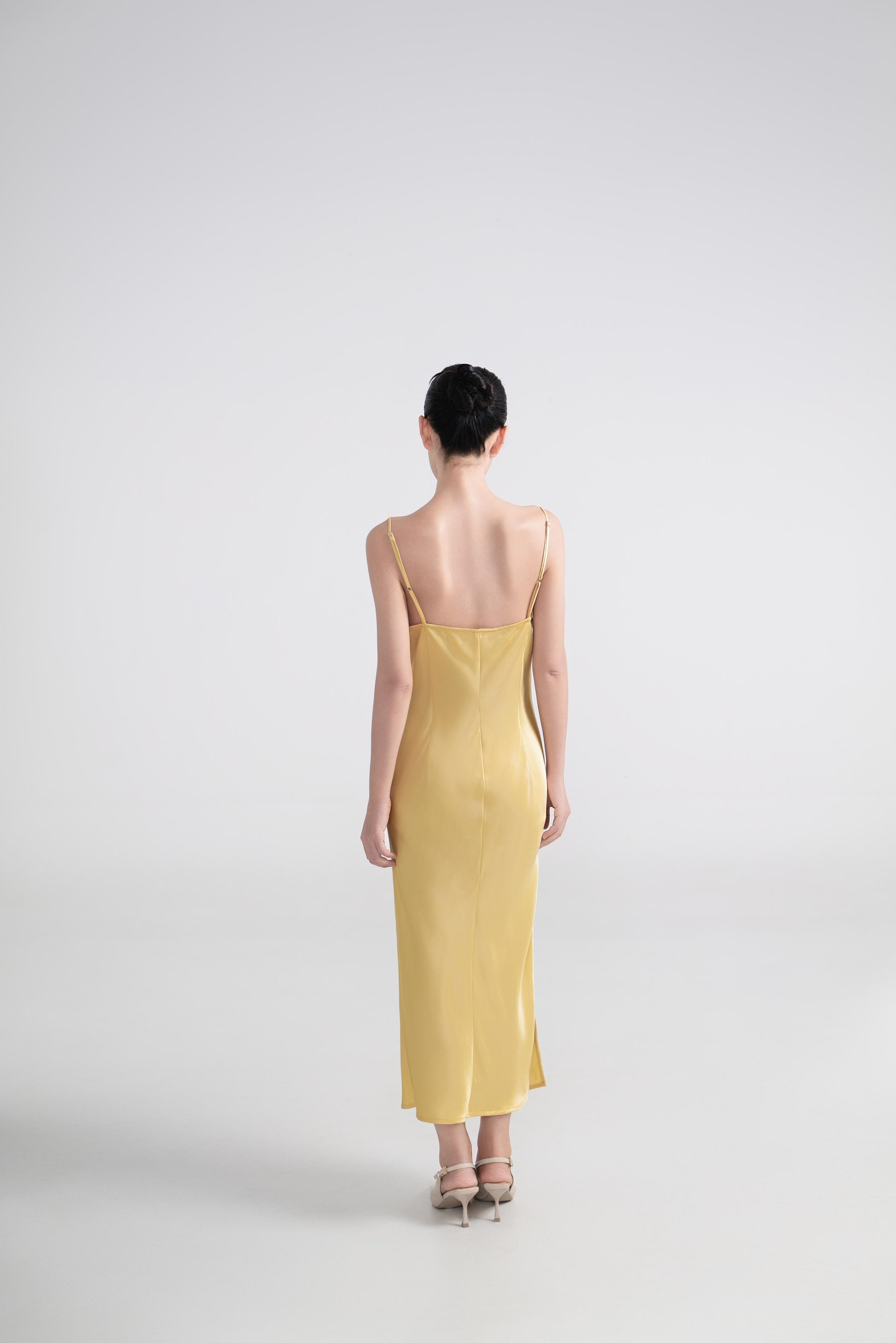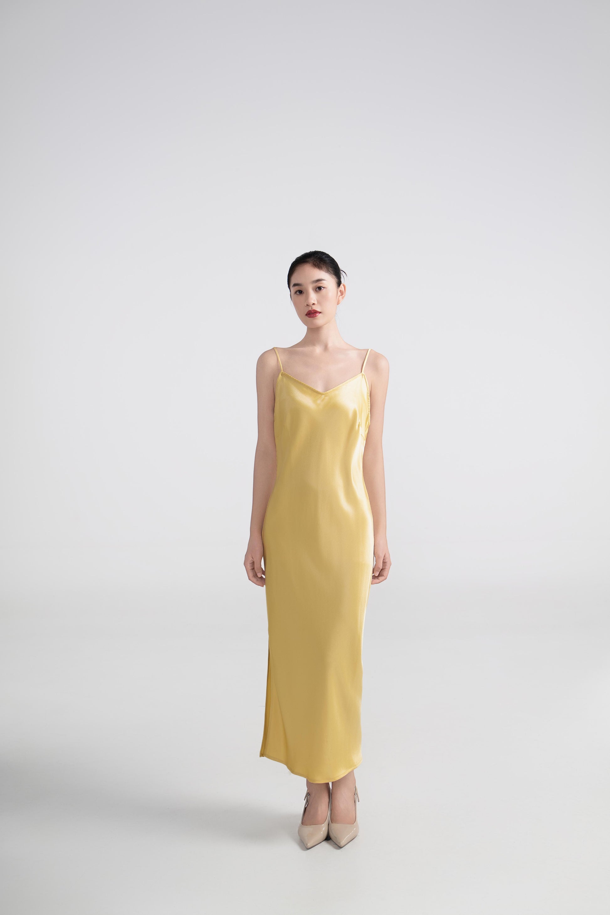 内搭裙子为吊带斜裁款式,贴身剪裁柔和有度,配合整体造型更添松弛感。